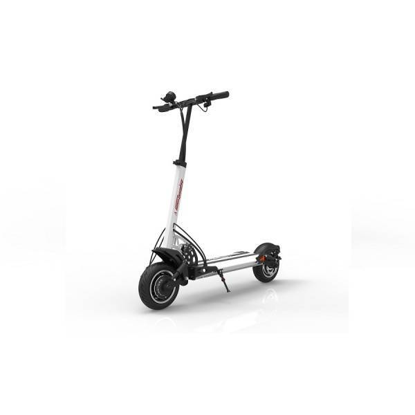Полный привод. На каждой колесной ступице стоит электродвигатель мощностью 800 Вт. Когда работают оба мотора, электросамокат разгоняется до 65 км/ч и способен заехать на трассу с продольным уклоном 37%. При этом любой из двигателей можно отключить.